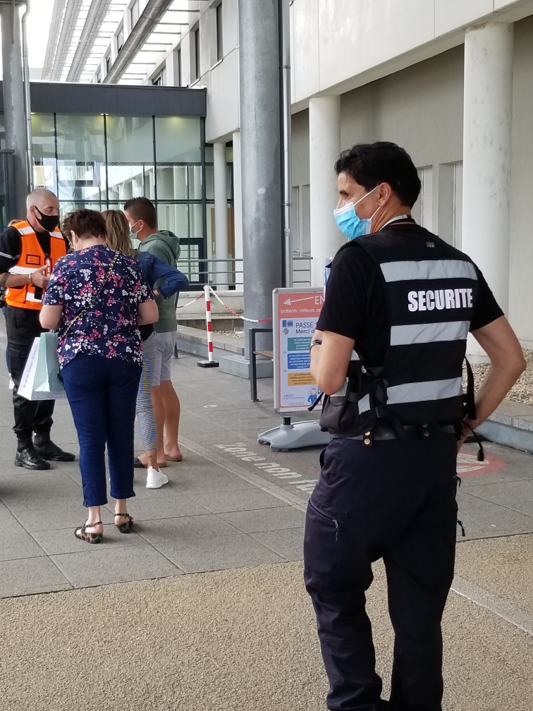 En pièces jointes deux photos de l’entrée du CHRU où les patient.e.s sont contrôlé.e.s et un lien vers le reportage de Radio Bip, le média alternatif de Besançon.