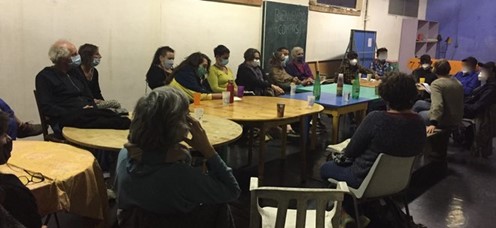 . Lors des diverses rencontres, des militant.es du Gers ont exposé leurs actions : actions féministes, actions au sein de l’hôpital psychiatrique pour la défense d’une véritable politique publique de santé mentale, conditions de travail des aides à domicile, occupation des lieux de culture pour les intermittents du spectacle et leur mode de lutte et de prise de décision (sur les AG, les agoras quotidiennes, le consensus, où l’on essaye de « convaincre sans imposer »), dans la défense des sans-papiers (les Zapatistes ont été sensibles à l’action menée par RESF et les 13 collectifs de soutien aux migrant.es, à la description du sort qui fait aux migrants expulsés des campements de manière violente, et se sont inquiétés de savoir ce que deviennent les sans-papiers qui n’obtiennent jamais une régularisation). Ici, à Auch, ils ont eu la surprise de trouver non seulement beaucoup d’interlocuteurs s’exprimant très bien en espagnol, mais aussi plusieurs volontaires à l’accueil qui avaient dans le passé effectué un voyage au Chiapas, sur les terres zapatistes.