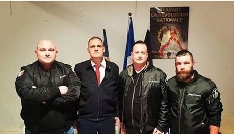 Le fondateur d’« Honneur et nation », Sébastien Dudognon (à gauche de la photo) en compagnie d’Yvan Benedetti, ancien membre du FN et de L’Oeuvre français, organisation d’extrême droite antisémite et anti-migrants, dissoute en 2013.