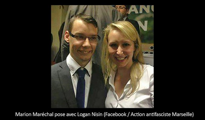 Logan Nisin, leader de l’OAS, condamné en octobre à 9 ans de prison ferme pour association de malfaiteurs terroristes, posant aux côtés de Marion Maréchal.