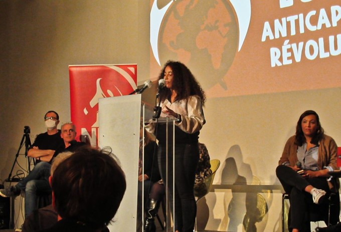 Philippe Poutou s’est éclipsé au profit de jeunes militants. Ici, Selma, la porte parole du NPA Jeune.