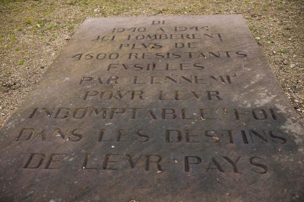 De la crypte, un escalier puis un chemin montent vers une clairière qui surgit au débouché d’un tunnel. Là, dans cet espace intime, dans ce pauvre décor, plus d’un millier de résistants et d’otages furent fusillés, de mars 1941 à août 1944. Extraits de leur cellule, ils étaient emmenés à pleins camions vers ce fort isolé, annexé par la Wehrmacht. Ils étaient parqués dans une chapelle puis menés, par petits groupes, à l’un des cinq poteaux d’exécution plantés au pied d’un talus. Une notification de la sentence par un officier. Un bandeau sur les yeux, sauf s’ils le refusaient. Une salve. Un coup de grâce. La constatation de la mort par un médecin. Les corps étaient ensuite placés dans un coffre de bois et chargés sur un camion. Au début, les dépouilles mortelles étaient enterrées à quelques kilomètres de là, au cimetière d’Ivry, dans ce qui est aujourd’hui le carré des fusillés. Mais leurs tombes devenant un lieu de pèlerinage dès l’Occupation, elles furent ensuite dispersées anonymement en différents cimetières.
