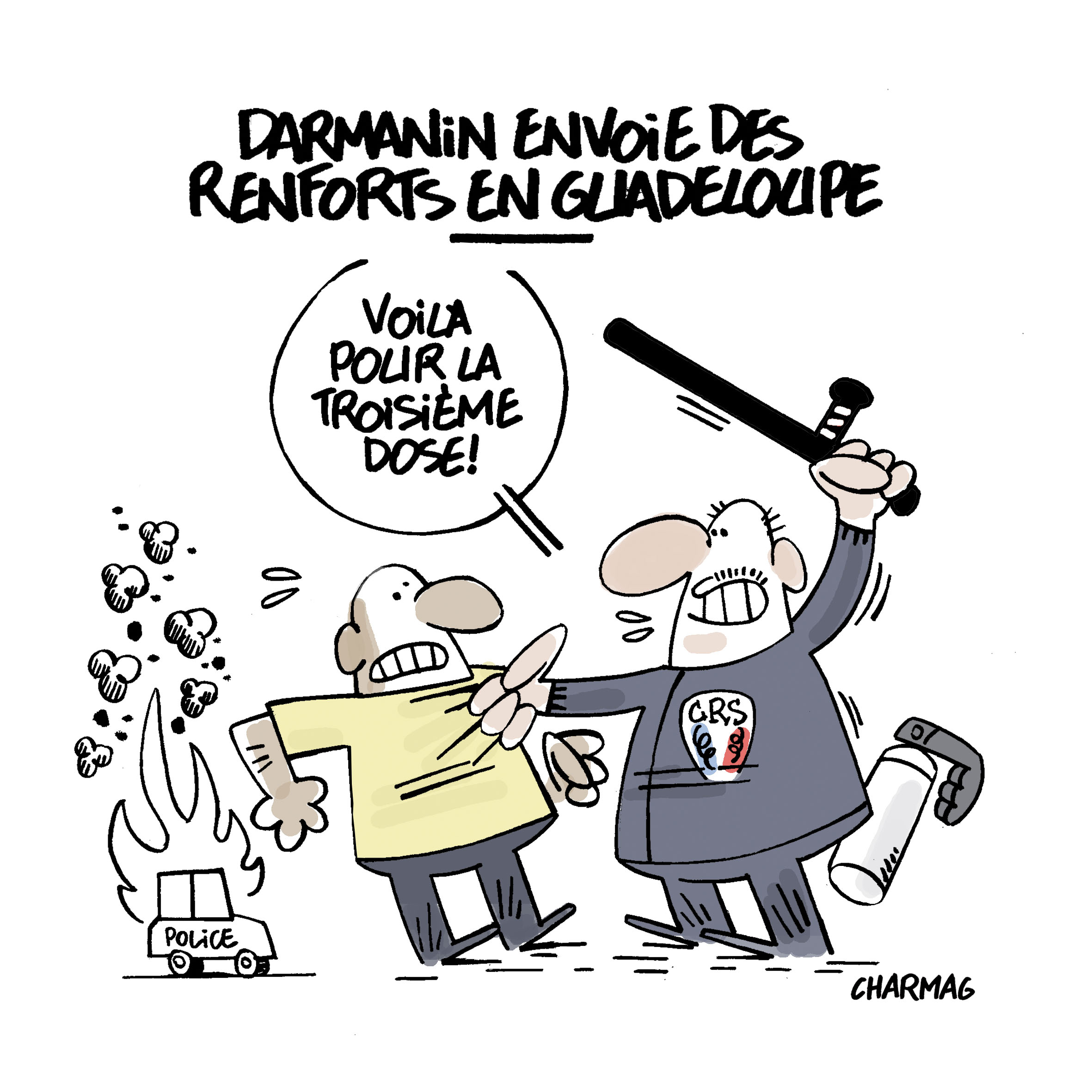 En France, les médias ne font écho que des « violences des manifestants » avec des images d’immeubles incendiés et de magasins pillés. Le premier flic de France, Darmanin, vient d’envoyer 50 agents du GIGN et du Raid, portant à 2250 le nombre de policiers et gendarmes présents sur l’île. Parallèlement, le couvre-feu a été établi sur toute l’île. C’est un dispositif et un état d’esprit strictement coloniaux dont fait preuve aujourd’hui le gouvernement, traitant avec un mépris souverain les exigences de la population de la Guadeloupe et de la Martinique.