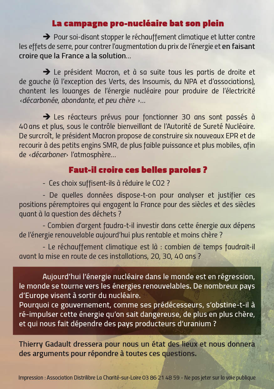 Cette entrée a été publiée le 29 novembre 2021 par dans ANTINUCLEAIRE, CONFERENCES, ORLEANS AGGLOMERATION.