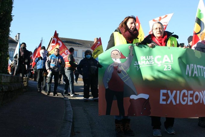 La Creuse est un département rural, mais son tissu industriel n’a rien de négligeable. C’est l’un des messages qu’a voulu faire passer “Plus jamais ça”, en organisant un rassemblement, à La Souterraine, devant le Centre culturel Yves-Furet, suivi d’une manifestation, ce samedi 18 décembre 2021.