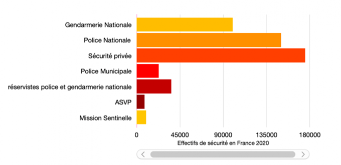 Car les effectifs sont colossaux : il existe actuellement 250 000 policiers nationaux et gendarmes en service, auquel il faut ajouter environ 23 000 policiers municipaux. Sans oublier les 36 000 réservistes de la police et de la gendarmerie nationale, les 8 000 ASVP ou encore les 10 000 militaires de la mission sentinelle. Si l’on intègre les agents de sécurité privée (environ 175 000), l’État est donc assis sur un effectif potentiel d’environ un demi-million d’individus pour gérer sa sécurité intérieure.