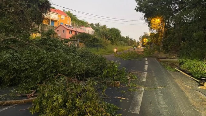 Un arbre est en travers de la chaussée, à Saline/Le Gosier – 03/01/2022 • ©Gessy Blanquet