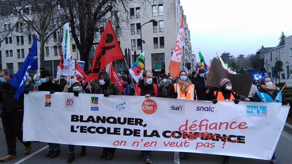 Banderoles et pancartes à la main, ils étaient d’abord plusieurs centaines de manifestants venus exprimer leur mécontentement devant l’inspection académique d’Orléans vers 10h30 ce jeudi 13 janvier. Beaucoup d’entre eux sont venus avec leurs enfants.