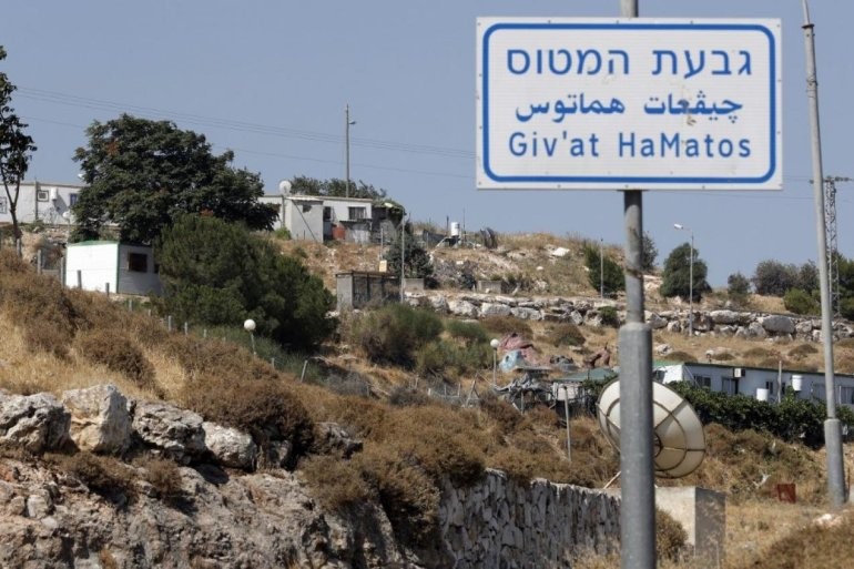 L’entrée de la colonie de Givat Hamatos, qui est construite sur la colline Al-Tayyar dans le village de Beit Safafa, au sud de Jérusalem (presse israélienne)