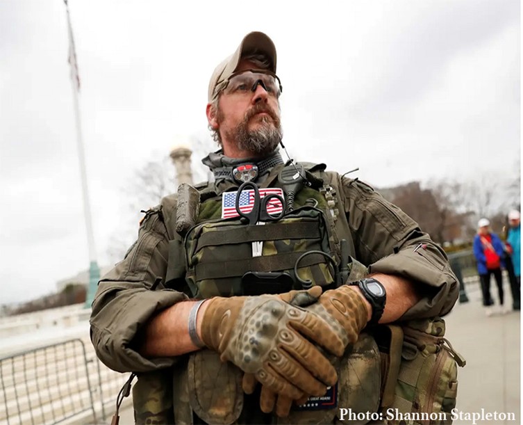 L’historienne Kathleen Belew, spécialiste de la mouvance suprémaciste, souligne, dans Libération du 5 janvier 2022, qu’une trentaine d’élus républicains sont identifiés comme sympathisants des Oath Keepers. (Réd.)