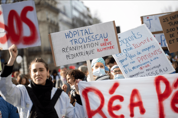 Manifestation de soignants contre la casse de l’hôpital public en février 2020, à Paris. © Mathieu Génon/Reporterre