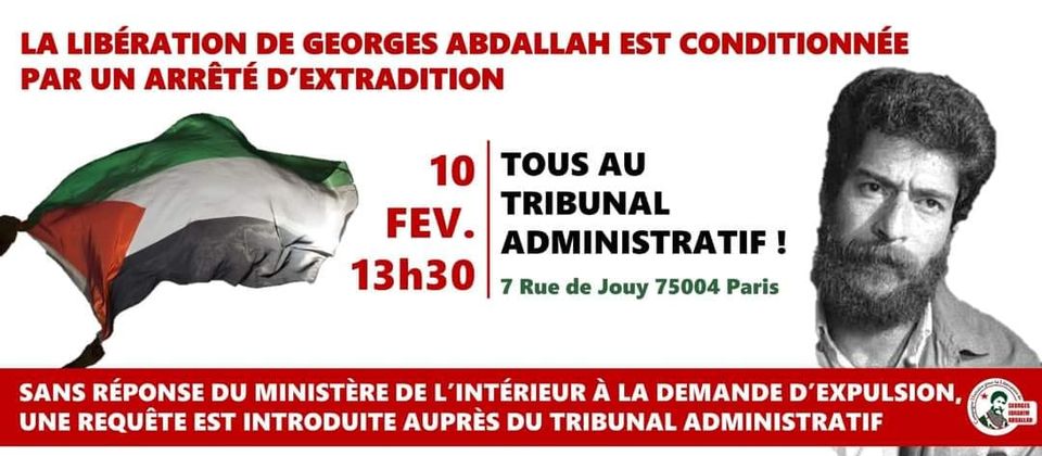 En ce jour symbolique, la Campagne Unitaire pour la Libération de Georges Abdallah appelle à se rassembler massivement devant le tribunal pour montrer notre détermination à ne rien lâcher jusqu’à la libération de notre camarade !