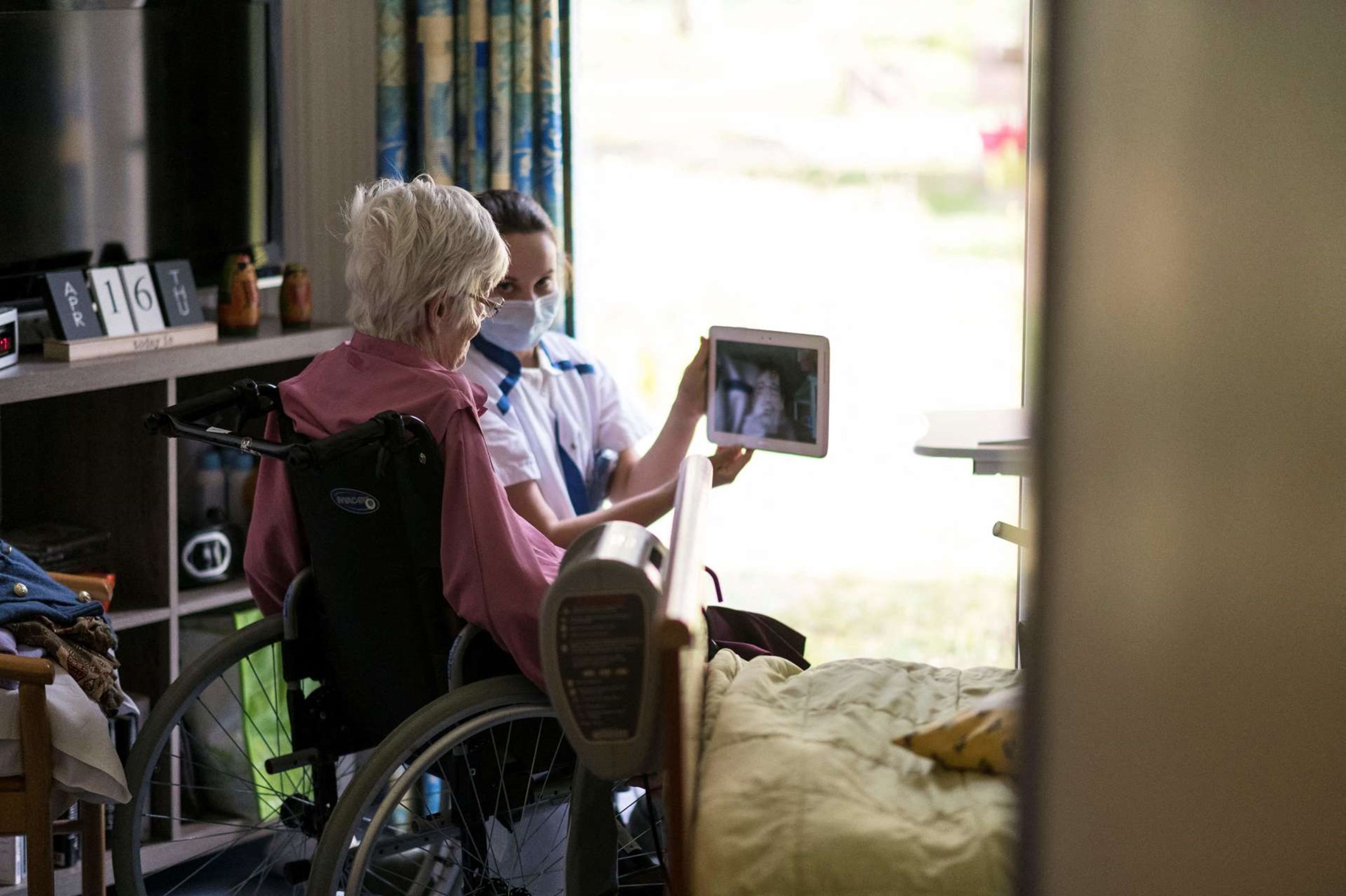 Dans un Ehpad à Thise (Doubs), le 16 avril 2020. SEBASTIEN BOZON / AFP