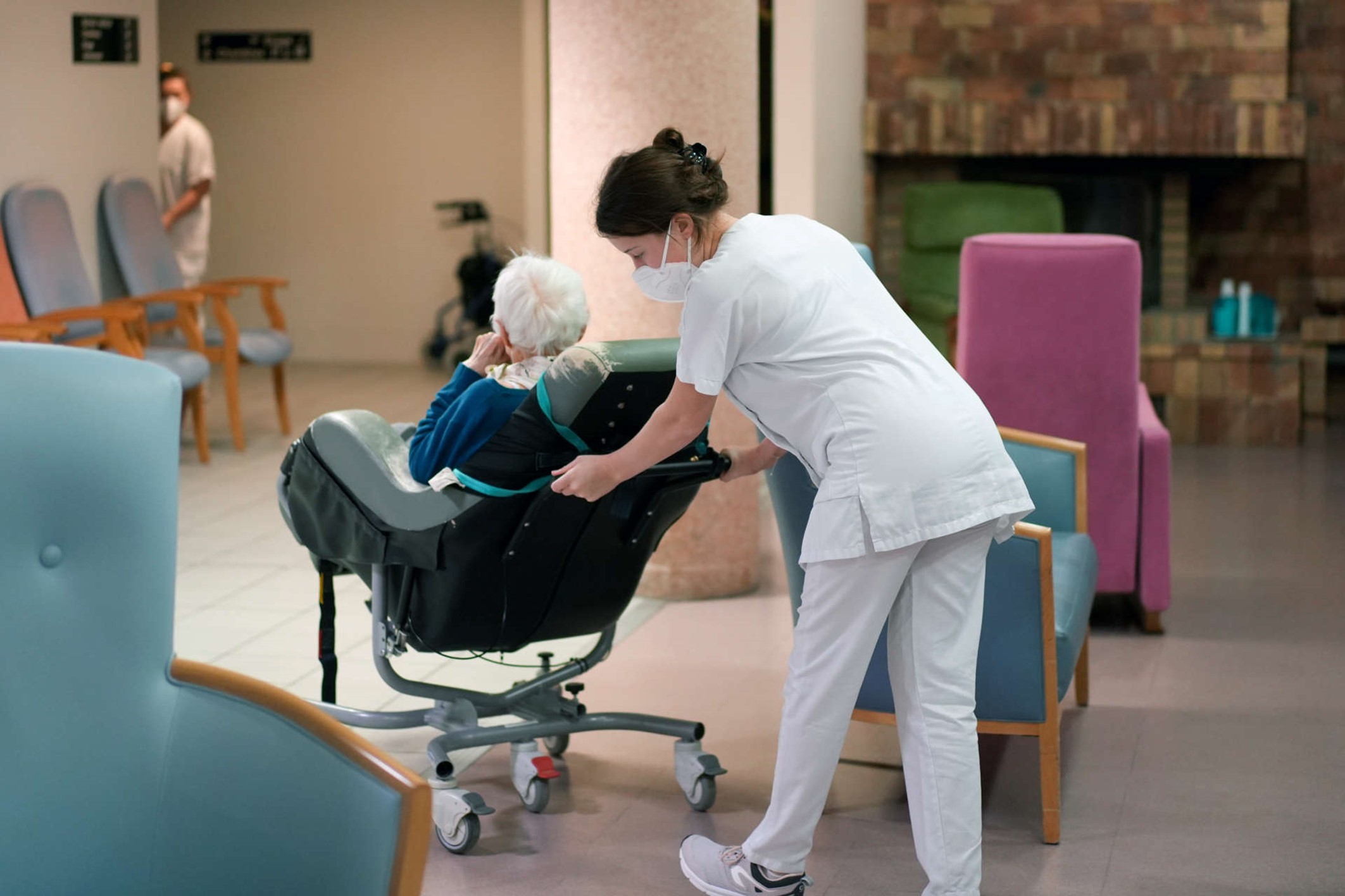 A l’Ehpad des 100 marches, à Montfort-en-Chalosse (Landes), le 10 février 2022. LAURENT FERRIERE / HANS LUCAS POUR « LE MONDE »