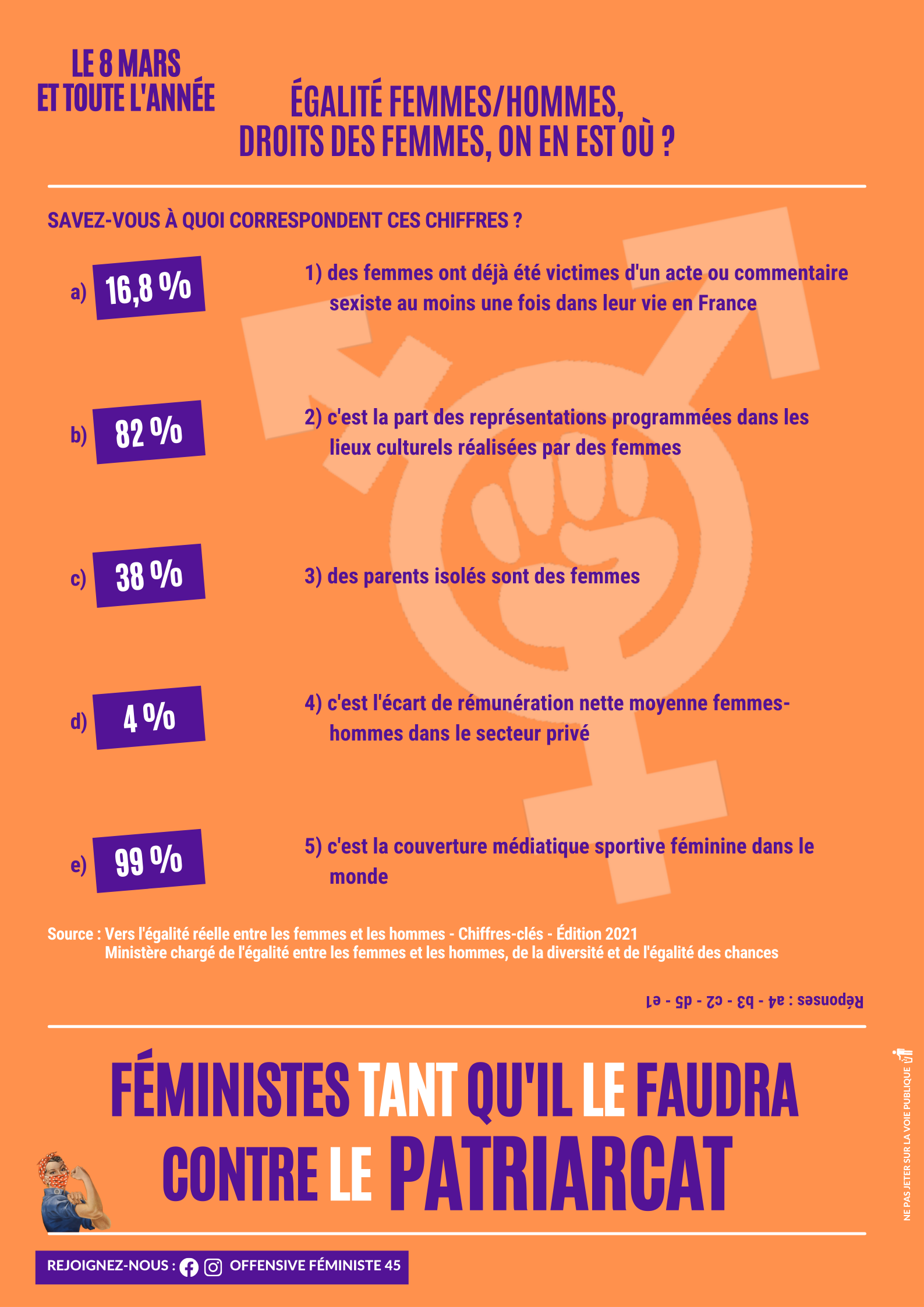 Pour que cela change, les femmes ne peuvent compter que sur nos propres forces en construisant un mouvement large et massif des premières concernées. C’est ce qui se passe aujourd’hui dans le monde entier. La date du 8 mars est une échéance qui rassemble, du Chili à la Turquie, du Mali à la Pologne. C’est une journée pour porter des revendications spécifiques qui permettent de faire converger les luttes des femmes et des minorités de genre, pour le droit à l’IVG, à la PMA, contre toutes les violences, pour l’égalité totale et réelle.