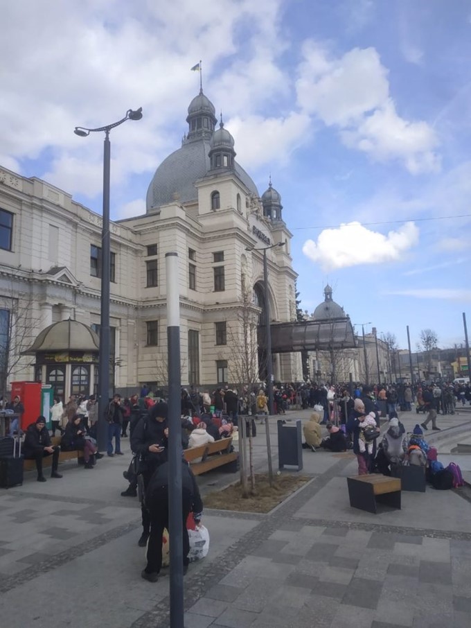 La Gare de lviv et ses passagers en attente de wagons, photographiée par Zouhair le 25 février dernier.