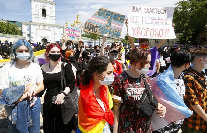 Marche de soutien aux personnes transgenres, Kiev, Ukraine, le 22 mai 2021.Efrem Lukatsky/Copyright 2021 The Associated Press. All rights reserved.