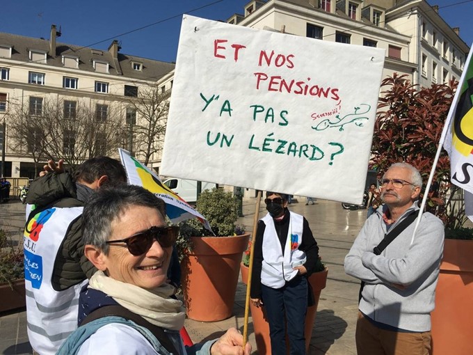 Sur la place, Sylvie de la FSU aborde un panneau avec un graphique éloquent indiquant les courbes inversées entre l’inflation et les pensions. « Ca saute aux yeux. Nous devons peser sur l’élection présidentielle. Les promesses n’ont pas été tenues. La hausse des prix est pour tout le monde. Il faut négocier les salaires mais aussi les pensions« , mentionne Marie-Claude.
