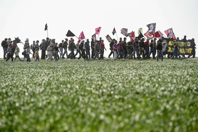 Ce «Printemps maraîchin» prévu pour durer jusqu’à dimanche, également soutenu par la LPO, EELV, Attac, le NPA ou encore la FI, dénonce «l’accaparement de l’eau par l’agro-industrie», «exige l’arrêt des travaux» et «la mise en place d’un moratoire sur les projets de méga-bassines». «Eau bien commun» , «Rechargez les nappes phréatiques avant de stocker l’eau», pouvait-on lire sur les banderoles brandies dans une foule calme, composée de jeunes adultes et de retraités, de familles, de militants associatifs et syndicaux, ainsi que de personnes venues en bleu de travail ou encagoulées.