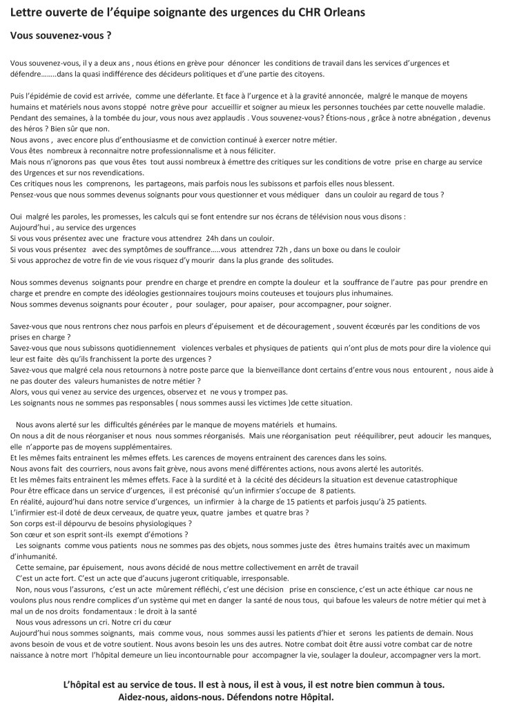 Mais quelle image désastreuse au moment où les pouvoirs publics se gargarisent de l’ouverture d’une fac de médecine à Orléans. Enfin un CHRUniversitaire qui ferait tourner les urgences grâce à des secouristes ? C’est vraiment révélateur du hors-sol total de ces parasites incapables de faire vivre, qui un hôpital, qui l’ARS. PatientEs tremblez et priez pour que votre santé demeure !