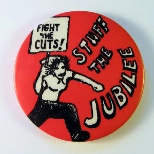 Une industrie Jubilee d’un milliard de livres produisant des tats sans fin avant la mise en décharge s’est développée. Un tel commerce exprime le gaspillage et l’insipidité du spectacle du consommateur. En même temps, les gens doivent décider s’ils doivent se chauffer ou manger et les banques alimentaires sont submergées par la demande.