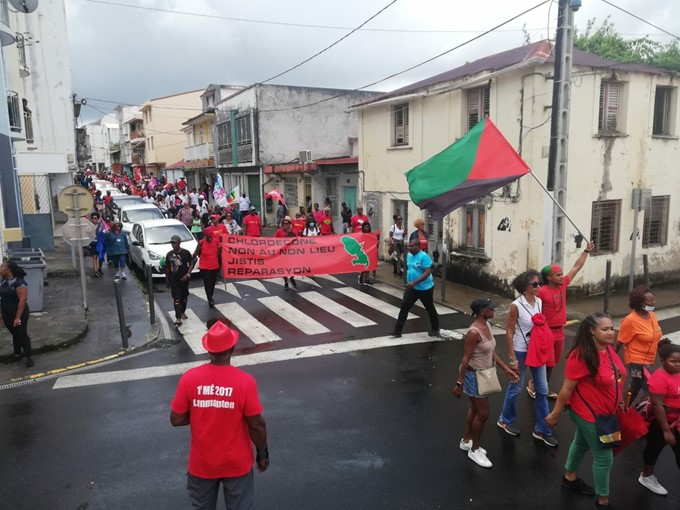 En Martinique, la journée du 28 mai a été consacrée à une grande mobilisation contre le non-lieu, pour la justice, pour les réparations dans l’abominable dossier du chlordécone. Tout s’est déroulé au Lamentin, la deuxième ville du pays, très impactée par le chlordécone et riche en patrimoine de lutte des ouvriers agricoles.