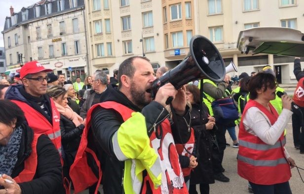 Frédéric Vuillaume, responsable FO et Gilet Jaune, en manif à Besançon le 17 novembre 2019