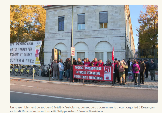 Rassemblement de soutien à Frédéric Vuillaume, convoqué une énième fois au commissariat de Besançon, octobre 2021