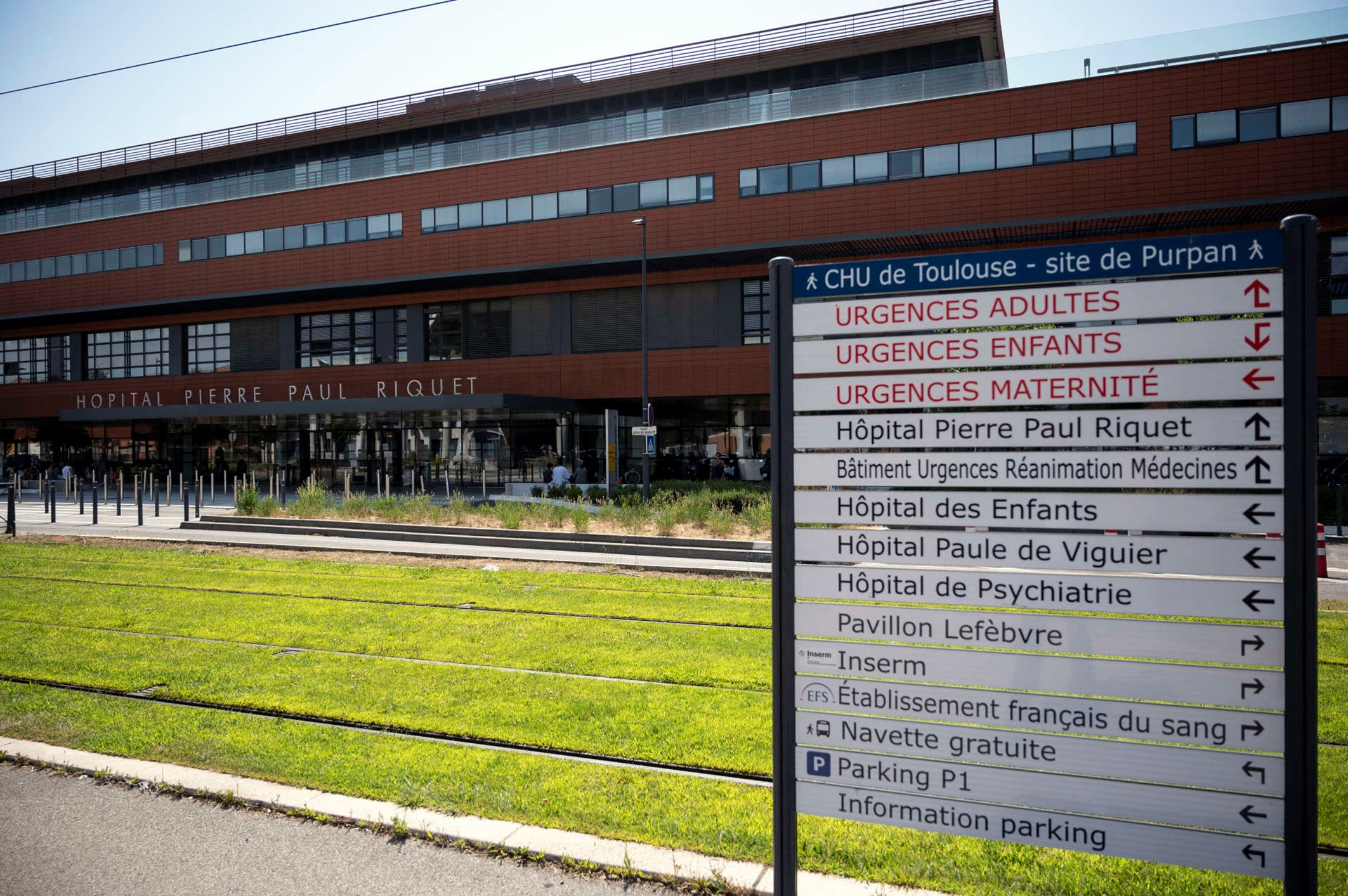 L’entrée de l’hôpital Pierre-Paul-Riquet du CHU de Purpan de Toulouse, dont les urgences adultes seront uniquement ouvertes aux « urgences vitales » à partir de lundi 13 juin 2022 au soir. LIONEL BONAVENTURE / AFP