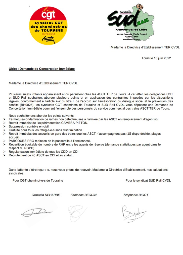 Depuis deux ans, ( Sud a laché le morceau il y à un an) nous faisons une grève guérilla en flingant les journées où nous faisons de l’accueil en gare de Tours( postes supprimés)…nous demandons la réouverture des accueils dans notre gare …la grève est larvée mais permet de poursuivre les discussions et entretient un climat anti direction…