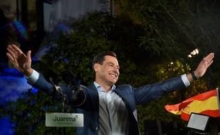 Juan Manuel Moreno célébrant sa victoire aux élections en Andalousie, à Séville le 19 juin 2022. — AFP