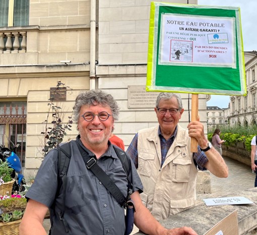 Manifestation de 50 personnes devant la mairie-métropole d’Orléans ce jeudi 23 juin 2023 à l’appel du collectif Eau Secours Orléanais 45 qui défend une gestion publique de l’eau potable. En effet, le conseil Métropolitain doit décider le 12 juillet si cette gestion de l’eau reste privée pour huit ans ou devient publique à compter du 1er janvier 2024. Pour comprendre les enjeux, entretien avec Éric Vidal et André Bouchoule, président et vice-président de ce collectif.