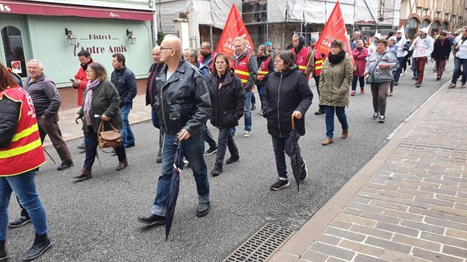 François Dufranne, délégué CGT de chez Duralex est aussi dans la rue : « Aujourd’hui pour les retraites, pour des métiers comme les nôtres travailler jusqu’à 65 ans c’est un risque de finir avec un handicap ».
