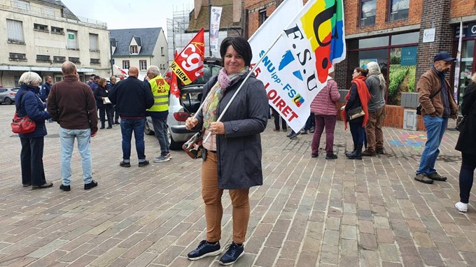 A Gien, 120 manifestants sont réunis sur la place Jean-Jaurès de Gien. Chose devenue moins courante dans la cité d’Anne de Beaujeu au cours de ces dernières années, les personnes mobilisées vont défiler dans les rues.Parmi eux, Muriel Dion représente, en tant qu’élue du personnel, le syndicat SNUipp-FSU. La directrice de l’école de Bonny-sur-Loire est « là pour deux raisons : l’augmentation des salaires de 3,5% insuffisante et qui ne répond pas au gel du point d’indice, et pour ce qui couve sur les retraites ».