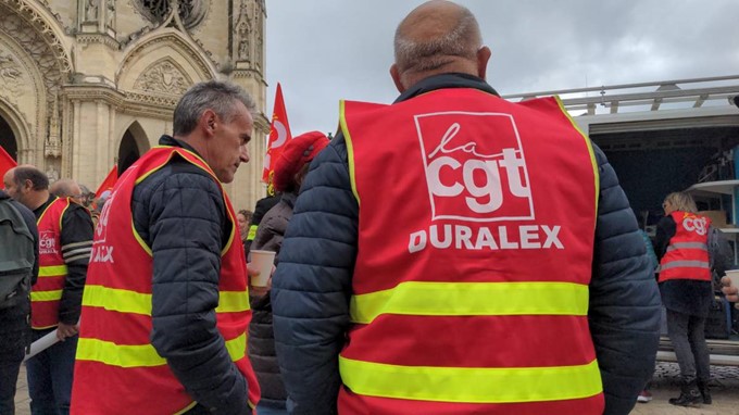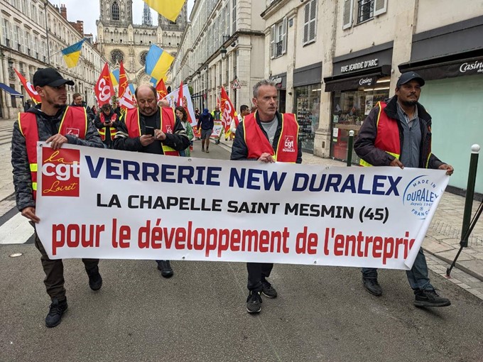 Les salariés de l’entreprise Duralex participent à la manifestation.