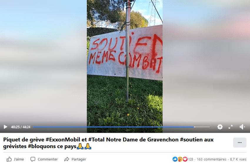 Pour autant, le mouvement continue car les salariés de la plateforme TotalEnergies Normandie avaient emboîté le pas à ceux d’ExxonMobil avec une semaine de décalage et ont de leur côté maintenu la grève jusqu’à mardi prochain, 18 octobre, journée de mobilisation interprofessionnelle. Cette mobilisation des raffineries a ainsi ouvert une brèche pour une relance et une extension du mouvement social (déjà rejoint par des branches des transports, commerces et services, routiers, etc.), donnant une impulsion spéciale à la manifestation de ce dimanche 16 octobre à Paris, prévue auparavant par la Nupes.