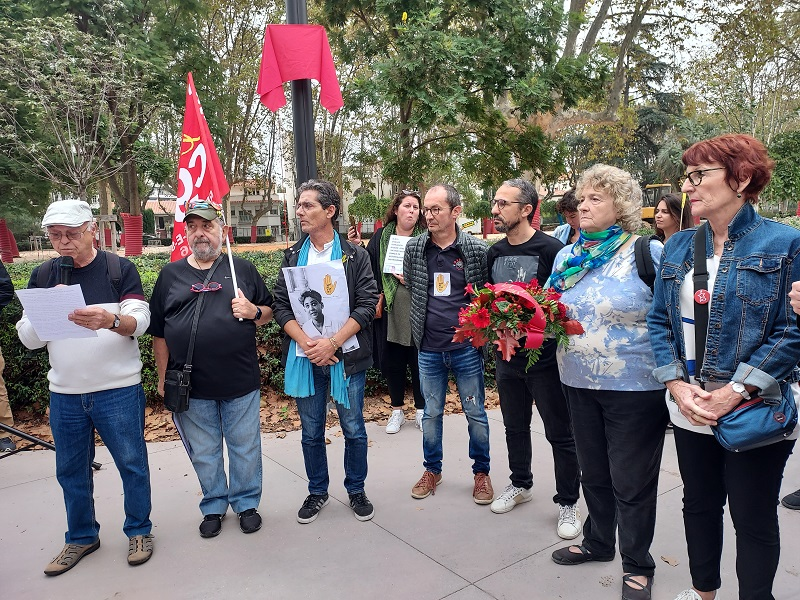 Après s’être rassemblés sur la place Molière, les manifestants se sont rendus sur l’esplanade en question, qu’ils ont décidé d’eux-mêmes baptiser. Une pancarte au nom de Maurice Audin, mathématicien, militant de l’indépendance algérienne, et torturé et tué en 1957 en Algérie a été installée.