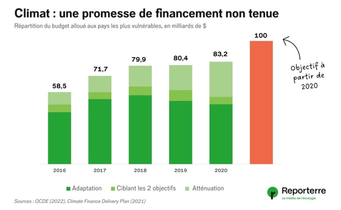 Autre enjeu, l’aide financière des pays riches vers les pays les plus pauvres, pour financer leur adaptation face au changement climatique, et leur permettre d’atténuer leurs émissions de gaz à effet de serre.