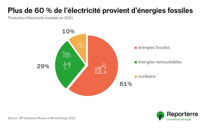 L’électricité, elle, provient toujours principalement des énergies fossiles.