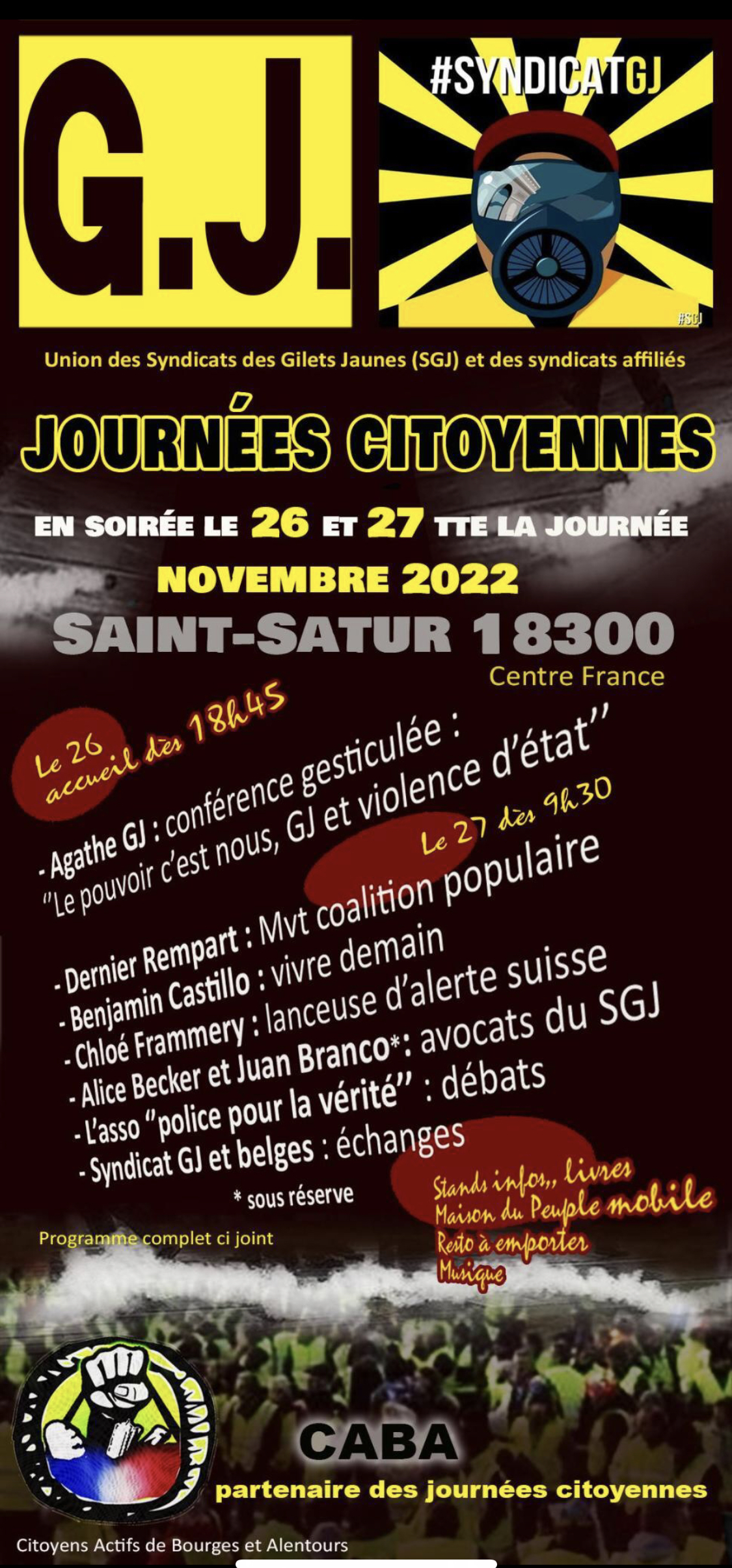 Conférences de Roger Lenglet: journaliste d investigation et auteur , Chloé Frammery: lanceuse d alerte suisse, Le dernier rempart: mouvement coalition populaire , Agathe Poirier GJ présente sa conférence gesticulée …