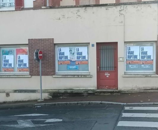 27 novembre, des affiches du parti Les Patriotes, mouvement créé par Florian Philippot en 2017, ont été collées sur les vitres du local du Parti communiste français, rue Pougin-de-la-Maisonneuve.