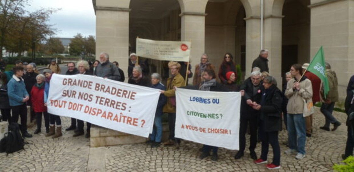Des représentants de toutes les branches d’activités concernées étaient donc attendus à la Région, notamment par une délégation regroupant différentes associations venues de toute la région, regroupées dans le Collectif Luttes locales Centre qui entend s’opposer au “bétonnage des terres agricoles” avec le soutien d’élus écologistes. Non sans humour, les manifestants remettaient à chaque arrivant des bons de réduction sur l’achat de terres agricoles. Plus sérieusement, les associations présentes exprimaient leurs craintes devant le nombre grandissant de projets de plateformes logistiques sortant de terre en région, multiplication qui semble être en rapport avec cette révision du STRADDET.