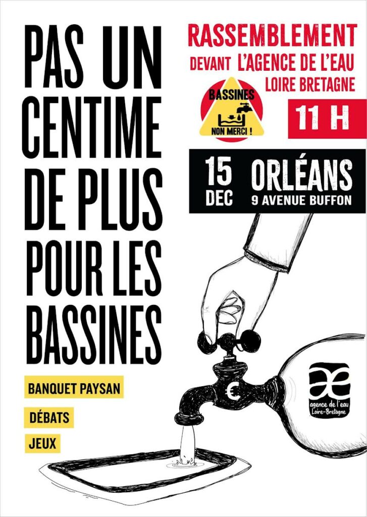 15 décembre 2022 à 11h00 Rassemblement à l’Agence de l’Eau Loire Bretagne, 9 Avenue Buffon 45100 Orléans
