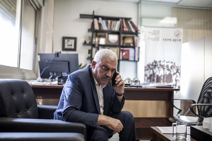 Shawan Jabarin, le directeur de la principale organisation palestinienne de défense des droits humains, Al-Haq, dans son bureau à Ramallah. Il prépare son voyage en Europe, notamment en France, pour évoquer la situation de son organisation, qualifiée de terroriste par Israël.
