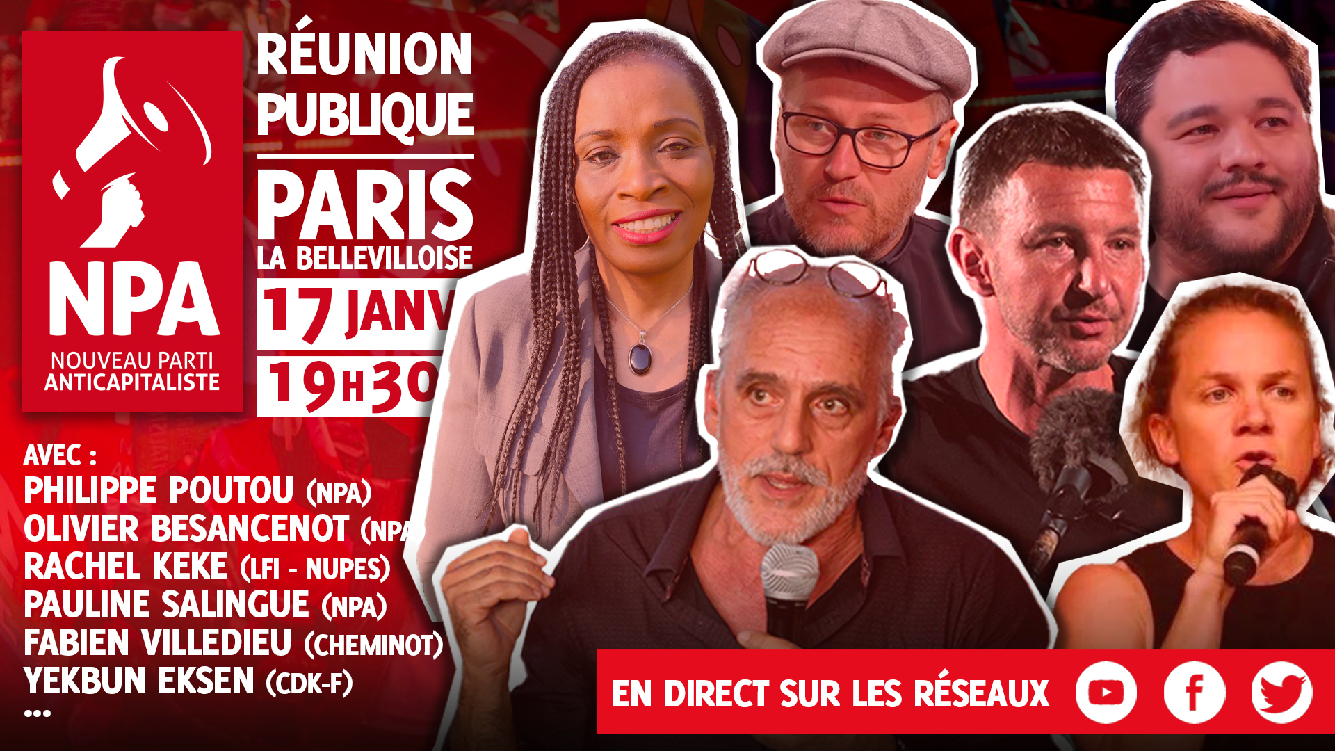 Meeting à suivre en direct sur nos réseaux à 19h30 sur YouTube, Facebook et Twitter