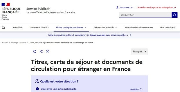 Ecran d’une porte d’entrée informatique pour commencer les démarches.