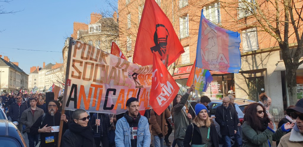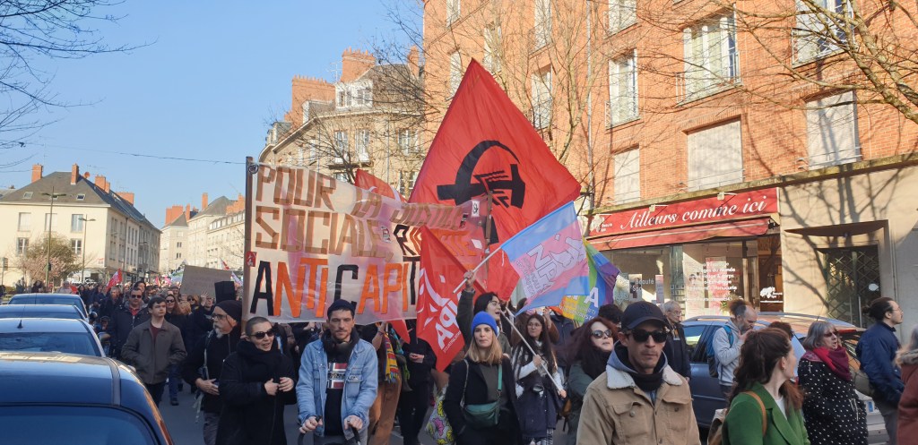 Exellent cortège Anticapitaliste Plein de jeunes à l’initiative de NPA, UCL, etc.