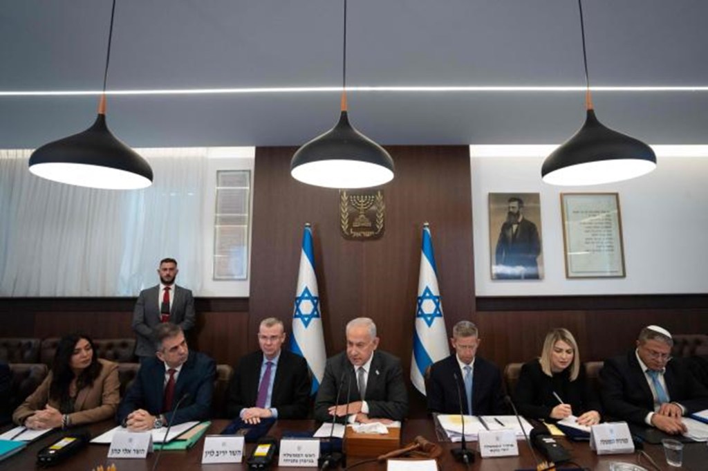 Le premier ministre israélien, Benyamin Nétanyahou, lors de la réunion hebdomadaire de son cabinet, à Jérusalem, le 12 février 2023. OHAD ZWIGENBERG / AFP