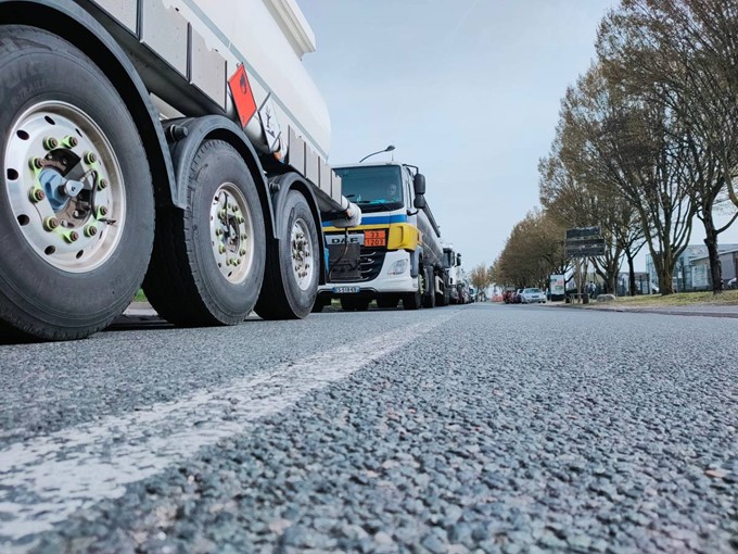 Des dizaines de poids lourds bloqués toute la matinée, entre l’avenue Denis-Papin et la tangentielle, à un bon kilomètre de là. Photo : David Creff