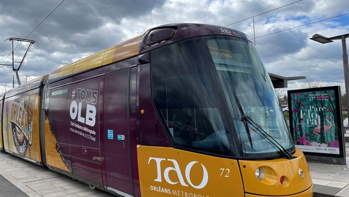 Le tram TAO aux couleurs de l’Orléans Loiret Basket © Radio France – François Guéroult